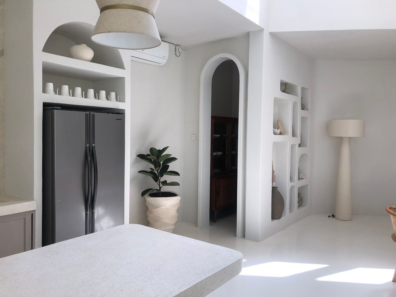 This romantic & luxurious villa kitchen stovetop full-size fridge an en suite bathroom a private pool enclosed living room.